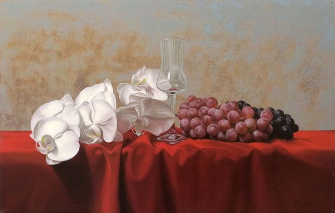 《胡蝶蘭と葡萄》 M10 油彩