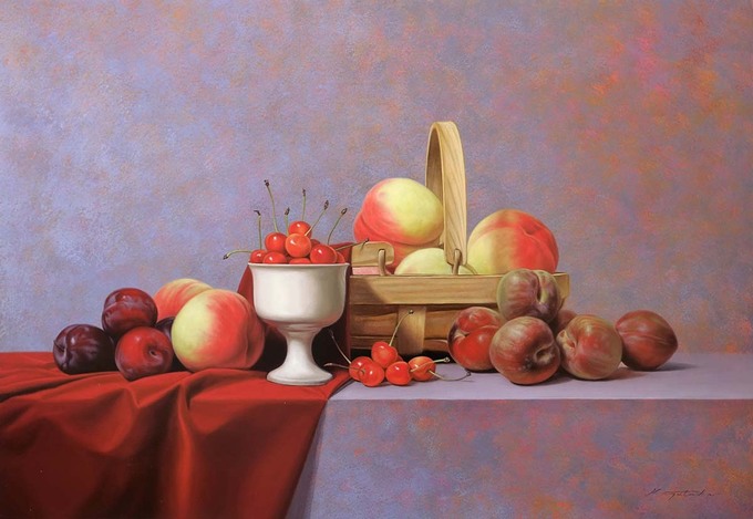 《籠の桃と果実》 M20 油彩