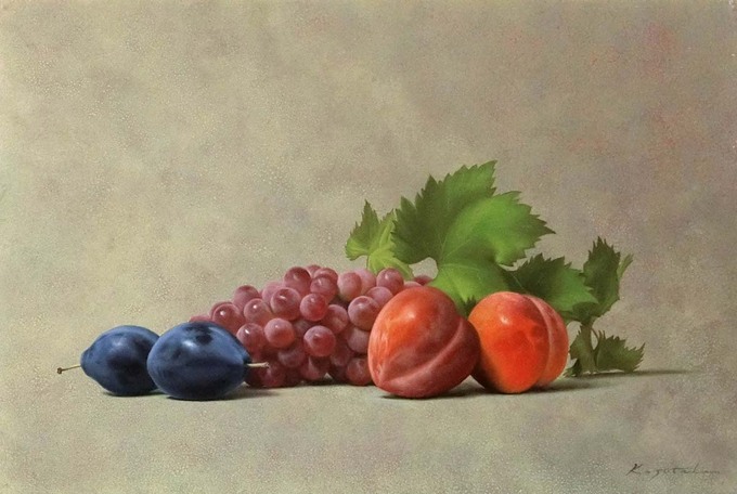 《葡萄とプラム》 P6 油彩