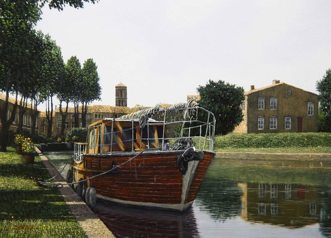 《運河の村の午後》 F4 油彩