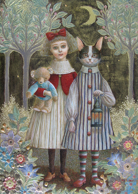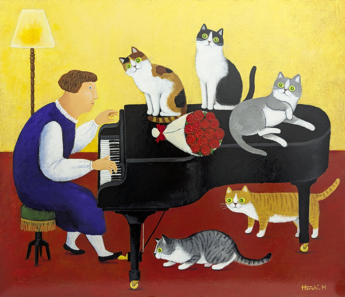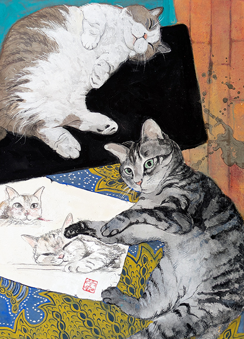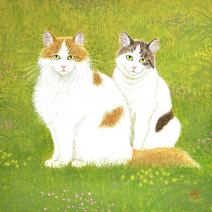 《ねこ・ネコ・ネコ・ねこ》 F4 日本画