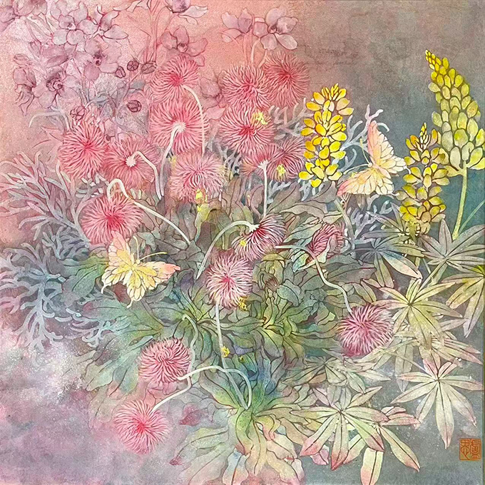 《ツムジ山 -花-》 13.3×9.7cm 日本画