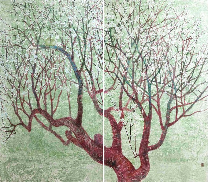 《如月之華(掛軸)》 各149.5×84cm 日本画